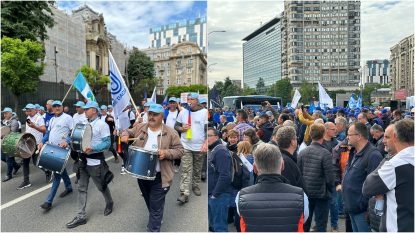 Protest în fața Guvernului. Blocul Naţional Sindical (BNS) şi cele 29 de federaţii afiliate protestează luni, 13 mai, în faţa Guvernului, cerând o „reformă fiscală urgentă”, potrivit unui comunicat al BNS.