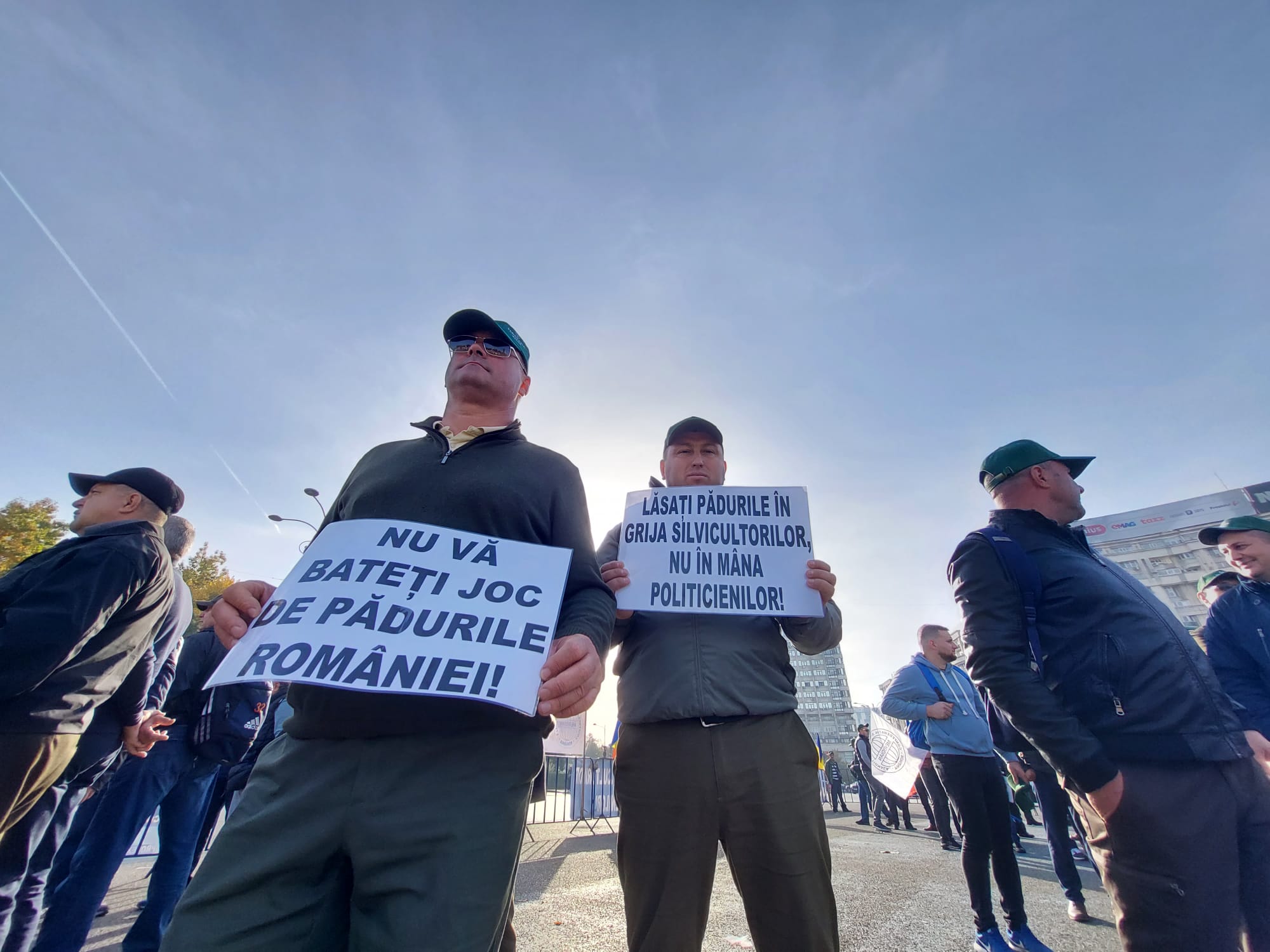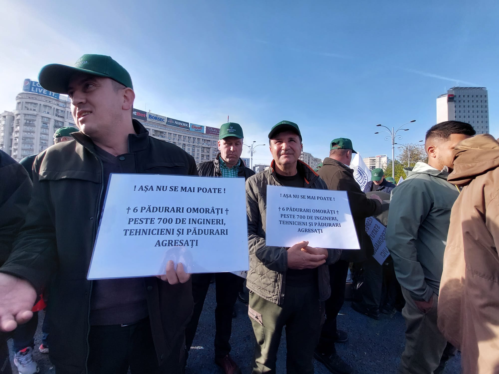 „Venim de la Iași, de la Ocolul Silvic Podu Iloaiei. Să ne respecte și nouă drepturile, o mărire de salariu iar această tăiere de angajați pe care vor să o facă e o prostie. În ultimii ani au murit o grămadă de pădurari, o grămadă au fost agresați. Ar trebui să ne ajute în privința pazei, mai ales acum cu criza asta energetică o să fie un an foarte greu”, spune unul dintre prostestatari.