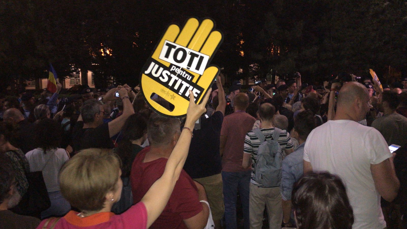 La ora 18:30, câteva zeci de persoane s-au adunat în fața clădirii Guvernului, în Piața Victoriei din București, pentru a protesta față de modul în care este modelată funcționarea Justiției.
