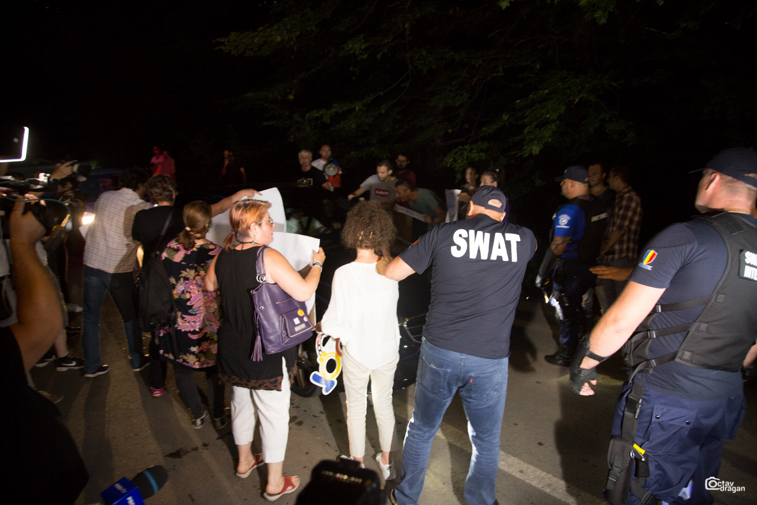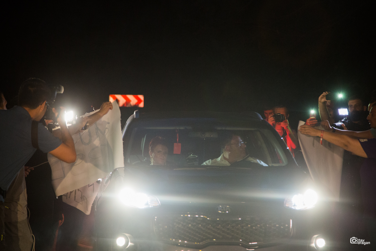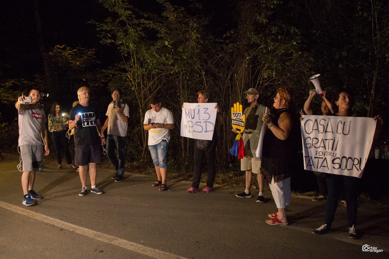 Protestatarii s-au strâns la Palatul Snagov și au scandat mesaje împotriva liderilor PSD-ALDE, care se îndreptau spre petrecere. “Casă cu gratii pentru tatăl socru” sau “Nuntă cu penali” au fost câteva dintre mesajele afișate de către protestatari.