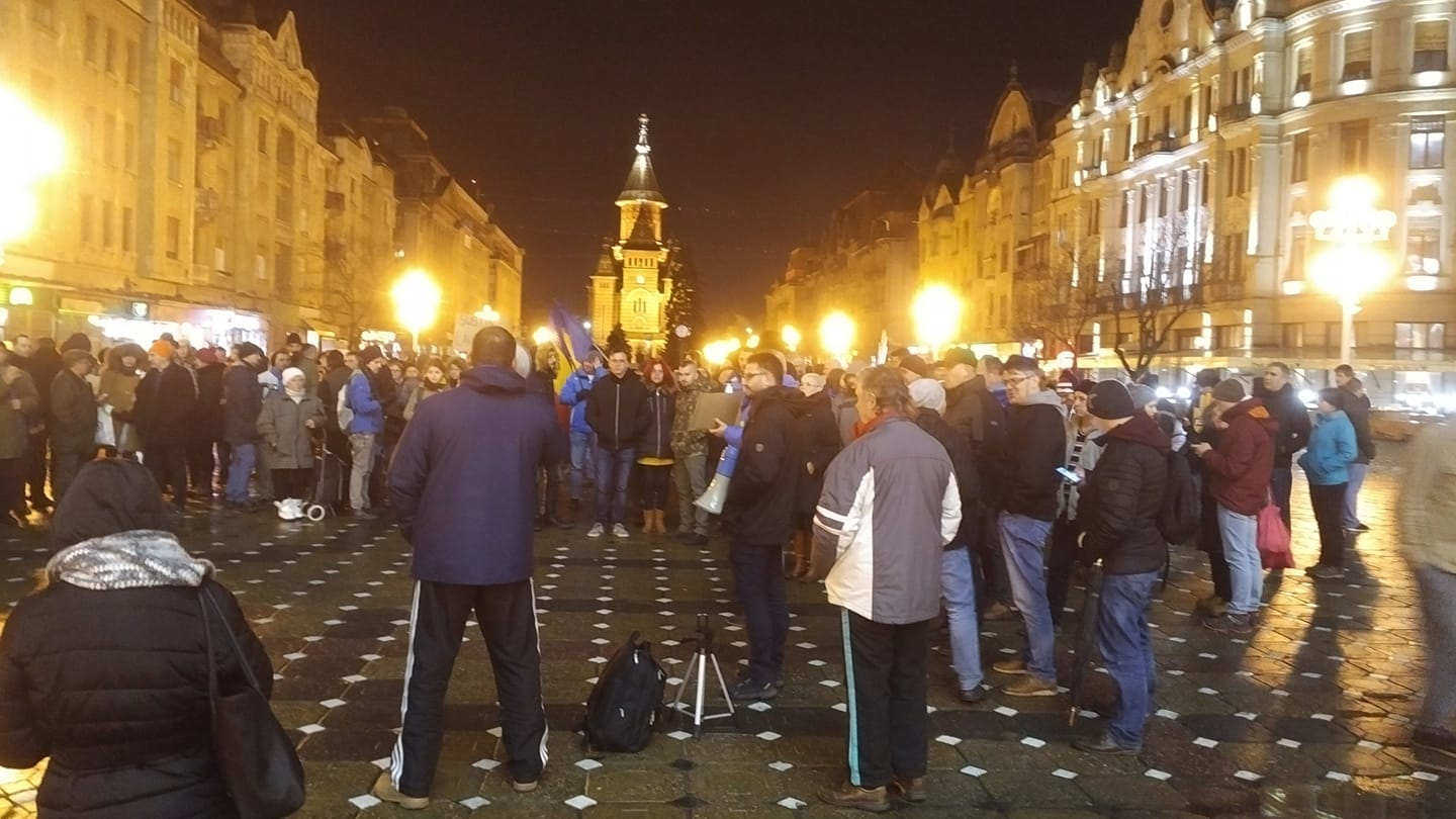 Cei adunaţi în piaţa centrală a Timişoarei cer demisia guvernului.