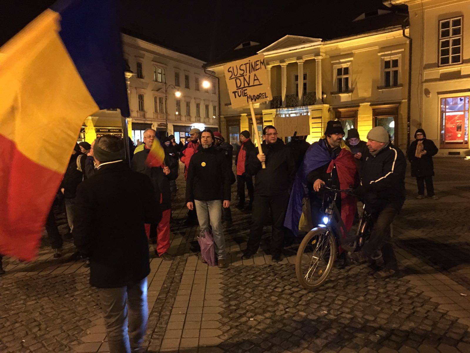 UPDATE: 20:40  Protest și la Sibiu. Aproximativ 100 de oameni se află în Piata Mare. Manifestanții striga: ”DNA te vom apara!” ”Afara cu PSD din țară! ” si ”Tudorel, sluga model!”