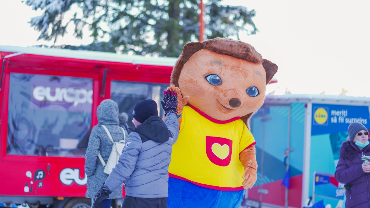 Ariciul Pufarici este de acum prezent pe Pârtia cu Surprize din Poiana Brașov.