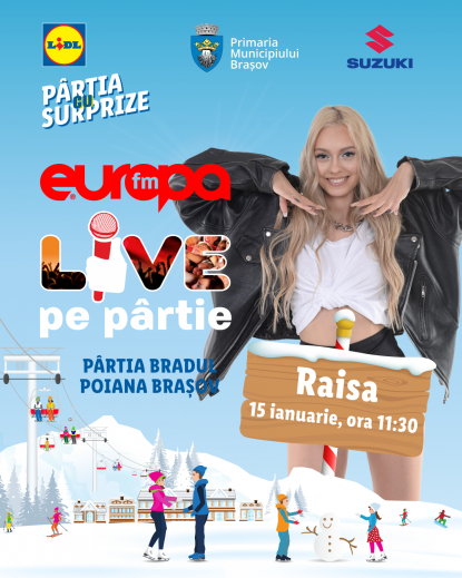 Sâmbătă, 15 ianuarie, de la ora 11:30, Raisa va urca pe scena Europa FM Live pe Pârtie, pe pârtia Bradul din Poiana Brașov. Intrarea este liberă.