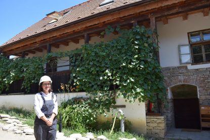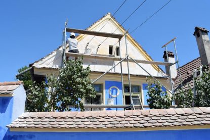 Am ajuns în luna iulie și am găsit la lucru, refăcând fațada unei case foarte vechi, o echipă condusă de restauratorul Ștefan Vaida.