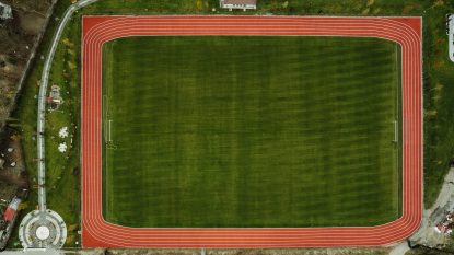 Doar că pista de atletism este, ca și la Blaj, dreptunghiulară, iar groapa de nisip pentru săritura în lungime se oprește într-un zid.