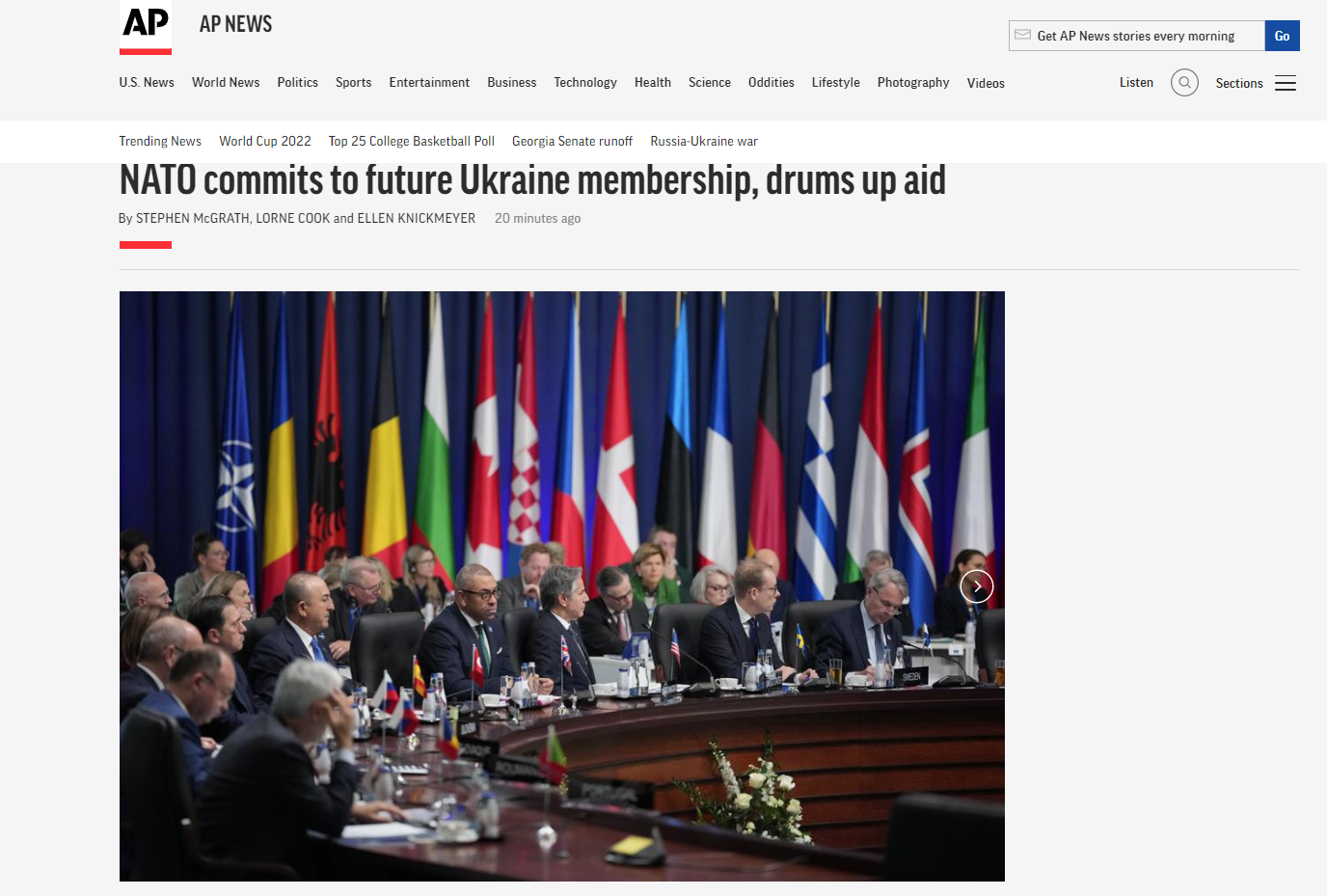 Associated Press: „NATO se angajează pentru o viitoare aderare a Ucrainei, mobilizând ajutoare”