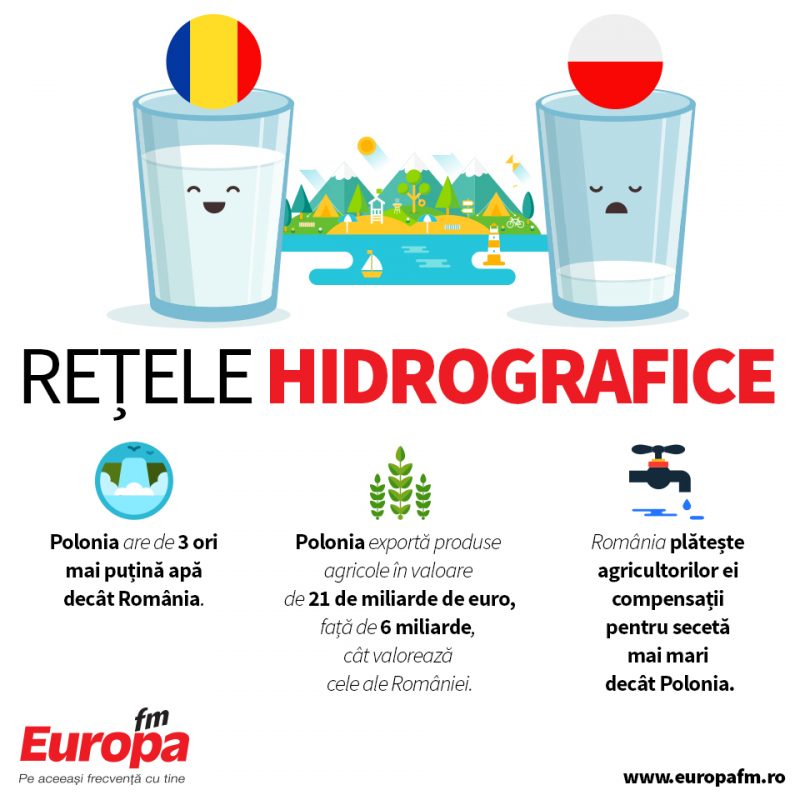 Polonia de exemplu, are de trei ori mai puțină apă decât România, însă reușește să exporte produse agricole în valoare de 21 de miliarde de euro.