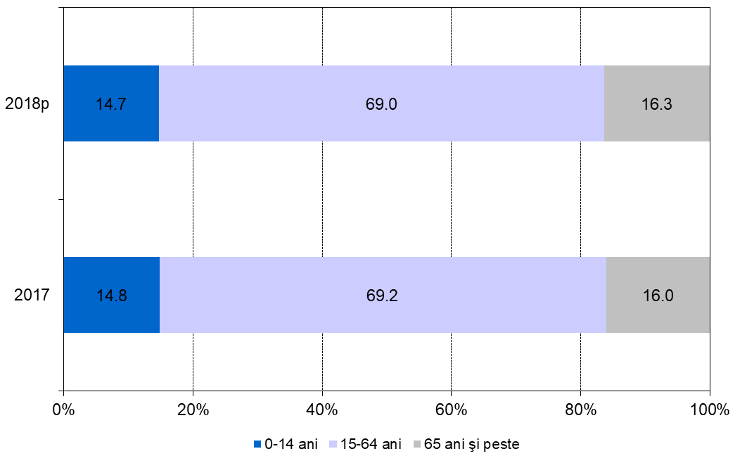 Procesul de îmbătrânire demografică s-a adâncit, comparativ cu 1 ianuarie 2017 remarcându-se o scădere uşoară a ponderii persoanelor tinere (0-14 ani) şi o creştere a ponderii populaţiei vârstnice (de 65 ani şi peste), arată datele transmise joi de Institutul Național de Statistică.