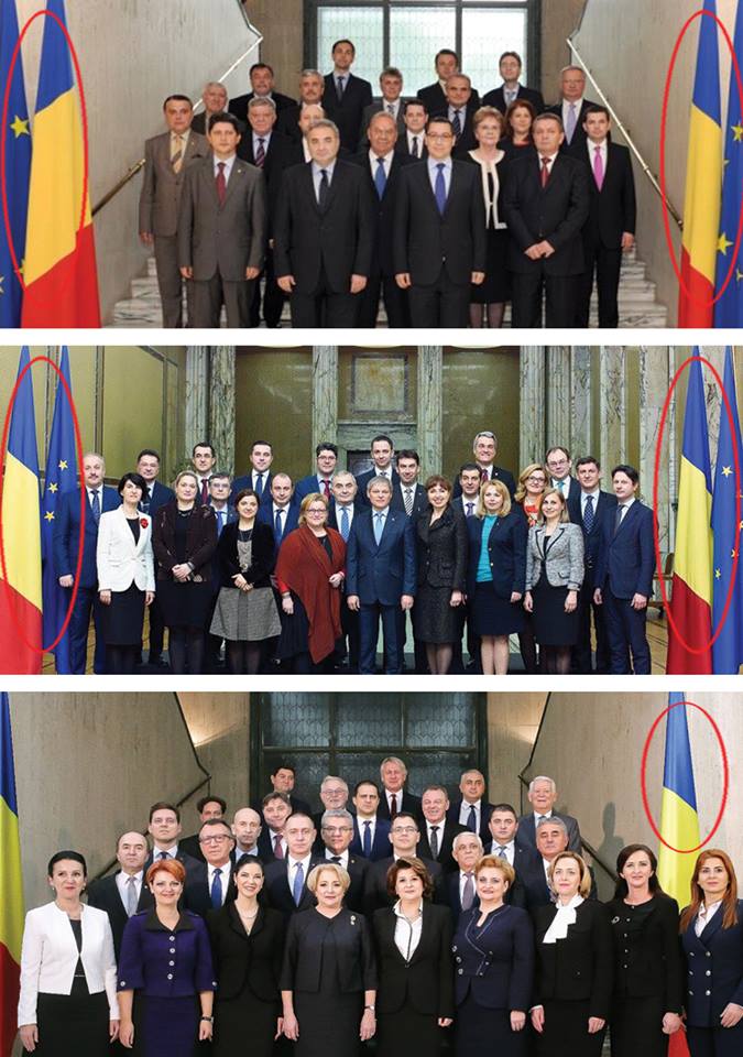 La două zile după ce a fost învestit oficial cabinetul Dăncilă, platforma 100, condusă de fostul premier Dacian Cioloș, atrăgea atenția asupra faptului că într-o poză oficială a Guvernului României, nu era steagul Uniunii Europene.