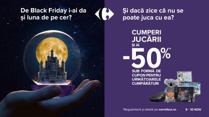 Scrie-ne pe WhatsApp, la numărul 0728 111 222, ce jucărie din oferta Carrefour de Black Friday îți place și pentru cine a-i cumpără-o.