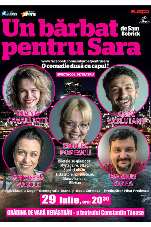 Pe 29 iulie, publicul are ocazia să vadă piesa “Un bărbat pentru Sara”, în care cea mai trăsnită mătuşă, Martha Hastings (Emilia Popescu) caută perechea potrivită pentru nepoata ei, tânăra avocată de success Sara Hastings (Diana Cavallioti).