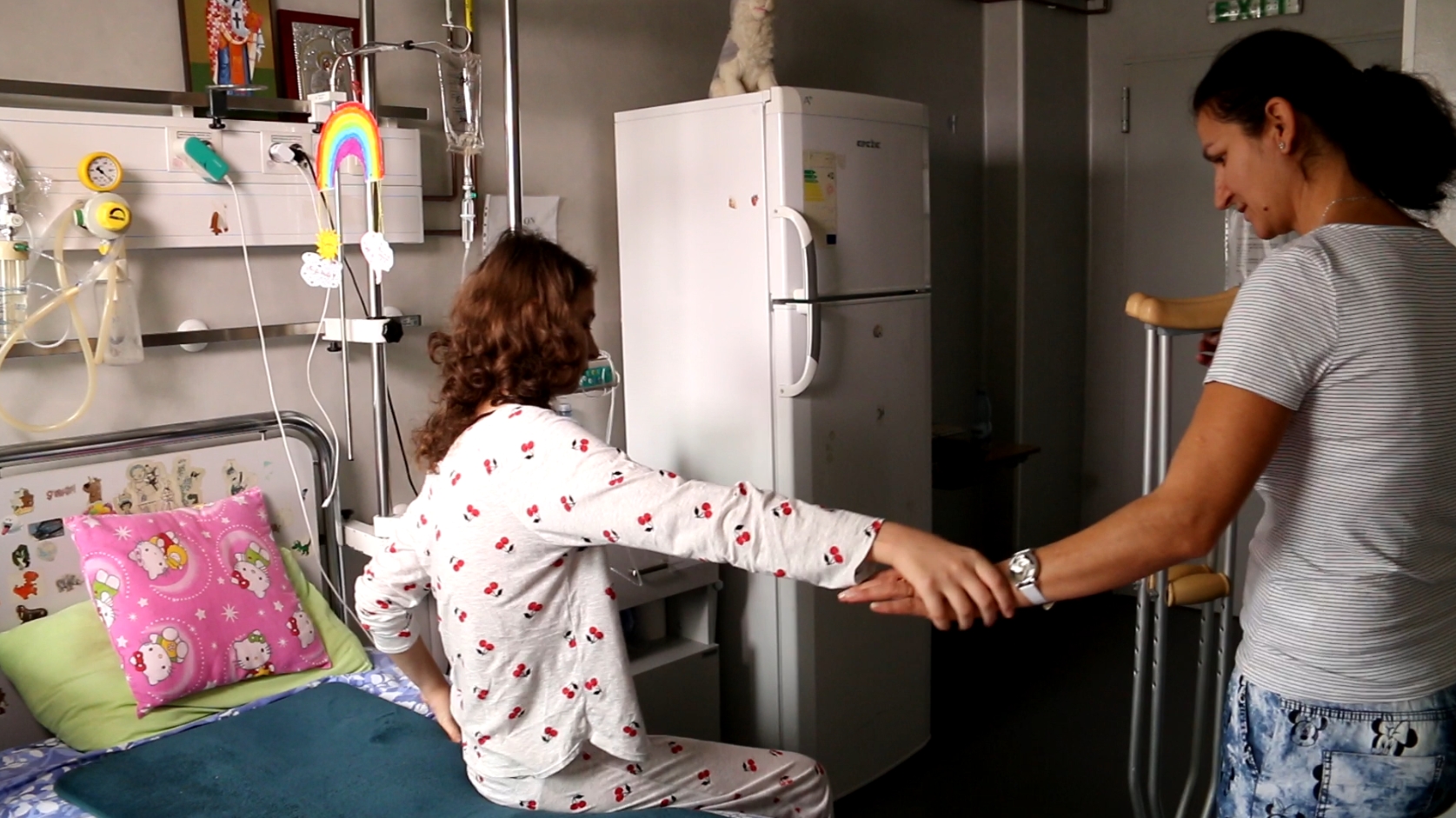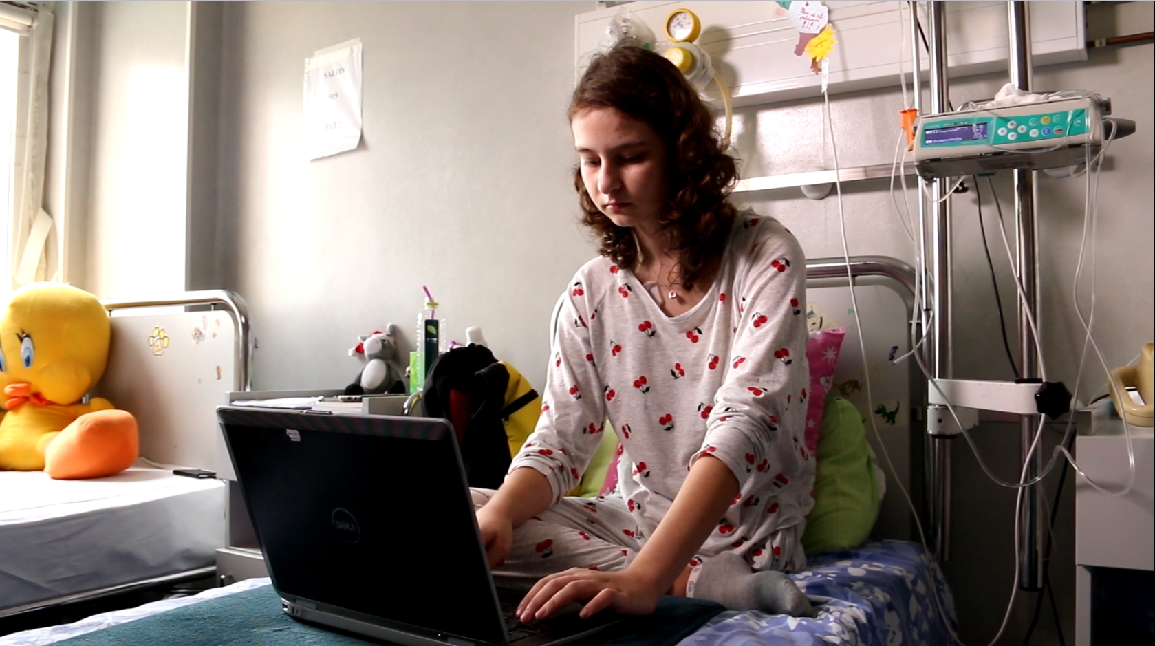 “Avem şcoală aici, la spital. Vin profesorii în salon. Anul asta, trei săptămâni a fost la şcoală, aşa într-un picior. Stătea de la 11 la 6. Venea acasă şi îmi spunea: mami, eu nu îi înţeleg pe copiii ăştia. Se plâng că nu au timp să înveţe, să scrie… Eu ce să mai zic de mine? Am şi dureri şi sunt aşa cum sunt” spune mama Simonei.