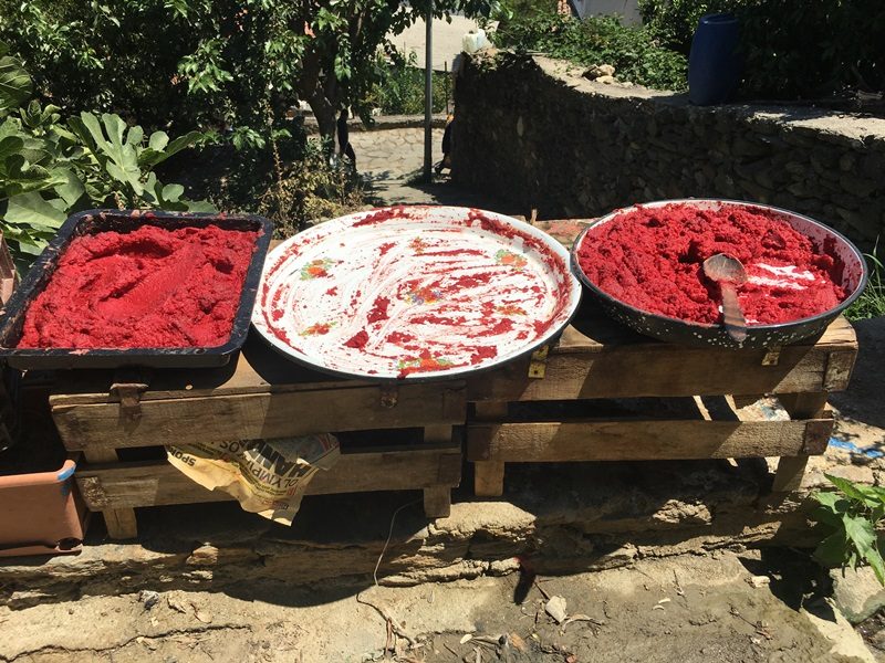 Pe stăzile satului, te întâlnești cu localnici care fac cafea la nisip, își coc pâinea la cuptorul din fața curții sau își pun la uscat pasta de roșii.