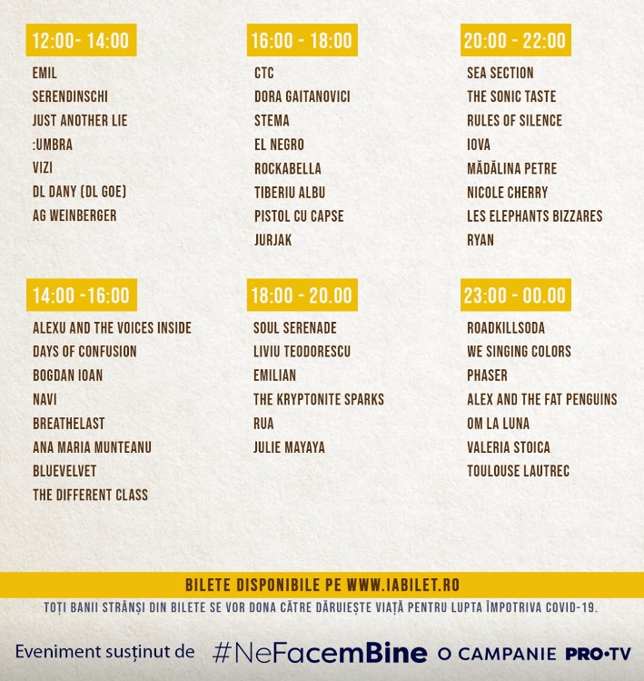 Realizat sub deviza “Cel mai mare festival de muzică din sufrageria ta”, evenimentul se dorește a fi o invitaţie la solidaritate şi la sprijin pentru cadrele medicale din prima linie de luptă cu noul coronavirus.