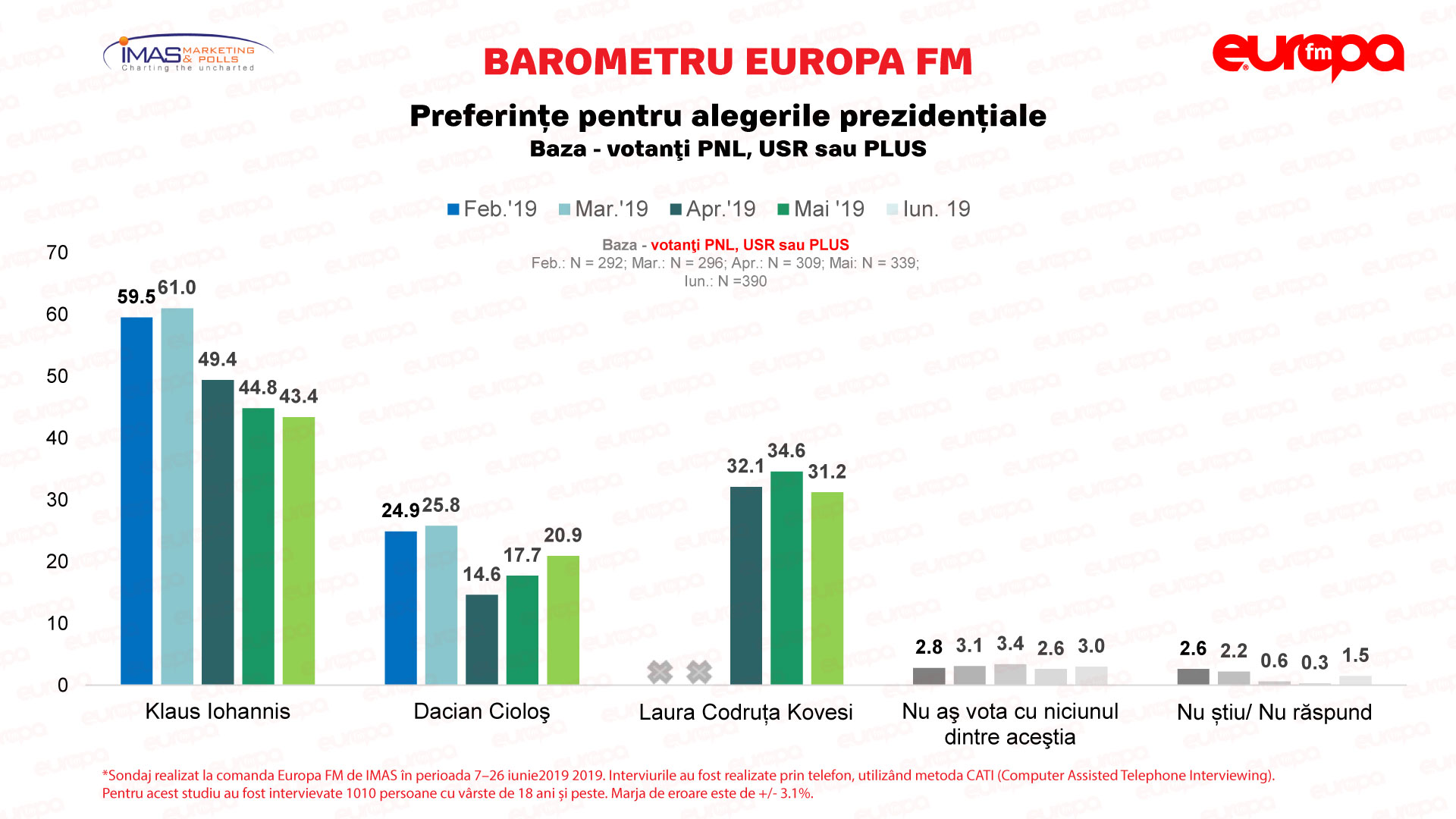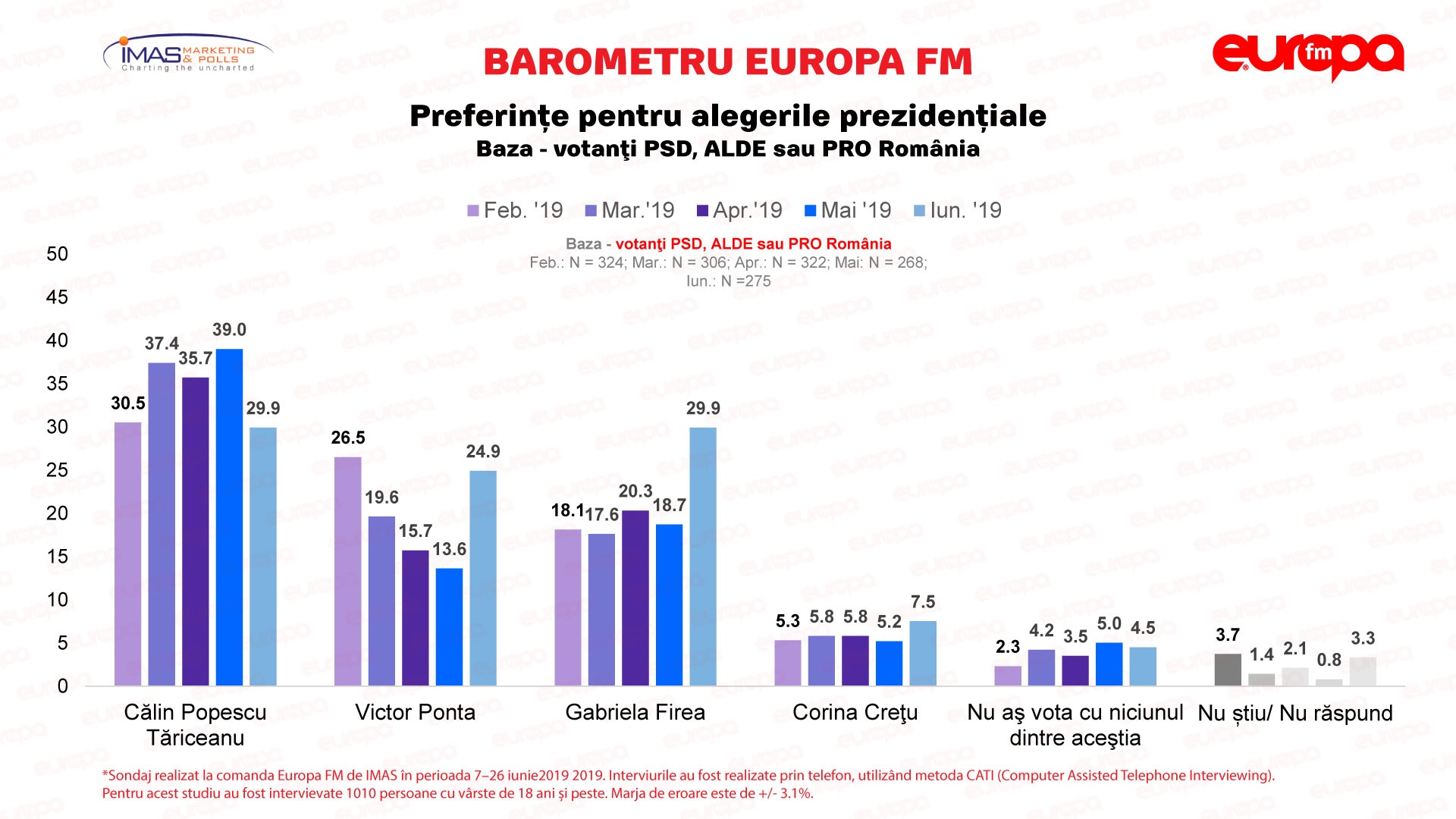 Pentru Barometru Europa FM, realizat de IMAS pentru Europa FM, au fost intervievate 1.010 persoane cu vârste de 18 ani și peste.