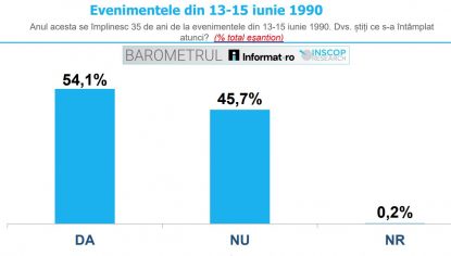 La 35 de ani distanță, dosarul Mineriadei este departe de a fi încheiat. La nivelul populației, 45,7 la sută dintre cei care au răspuns sondajului Inscop nu știu ce s-a întâmplat în iunie 1990, cei mai mulți dintre ei tineri între 18 și 29 de ani. Majoritatea celor care cunosc evenimentele sunt persoane cu vârste de peste 45 de ani.