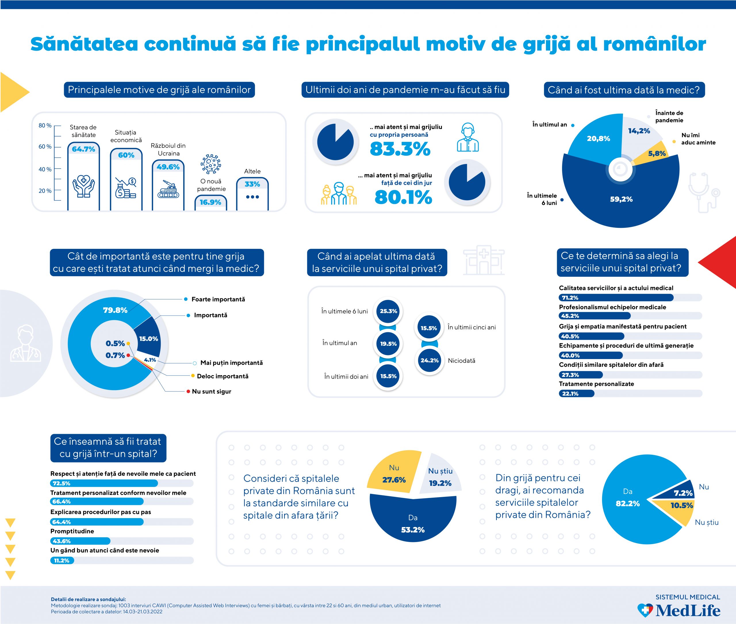 Sondaj MedLife: Sănătatea este principalul motiv de grijă al românilor, urmat de situația economică și situația războiului din Ucraina (P)