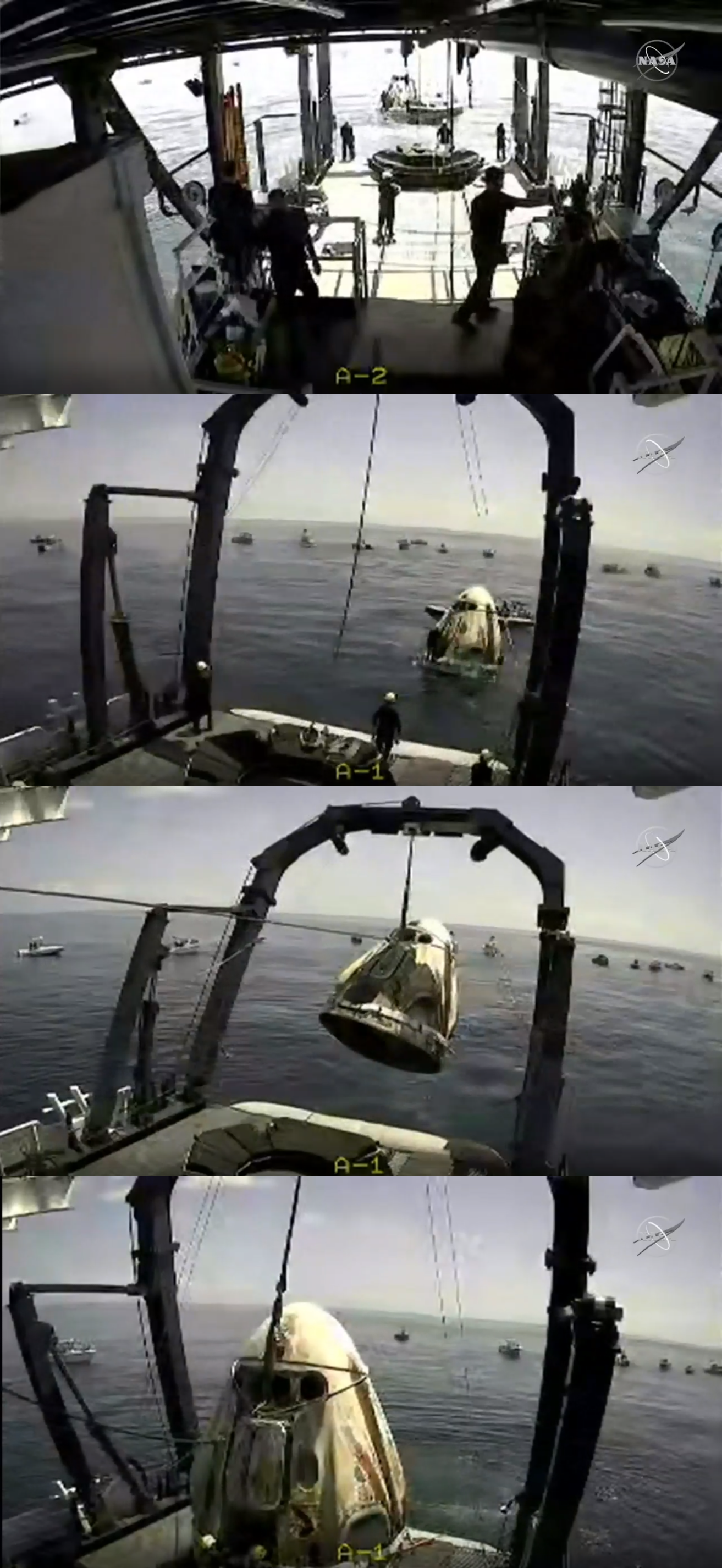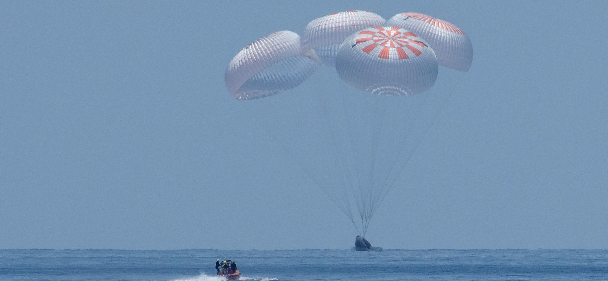 La finalul unei călătorii de la Stația Spațială Internațională, cei doi astronauți de la bordul capsulei Crew Dragon au ajuns cu bine înapoi pe Pământ. Zborul test Demo-2 a fost parte din programul NASA de testare a zborurilor comerciale în spațiu cu echipaj la bord și a fost primul realizat cu o navă construită de o firmă privată – Space X.