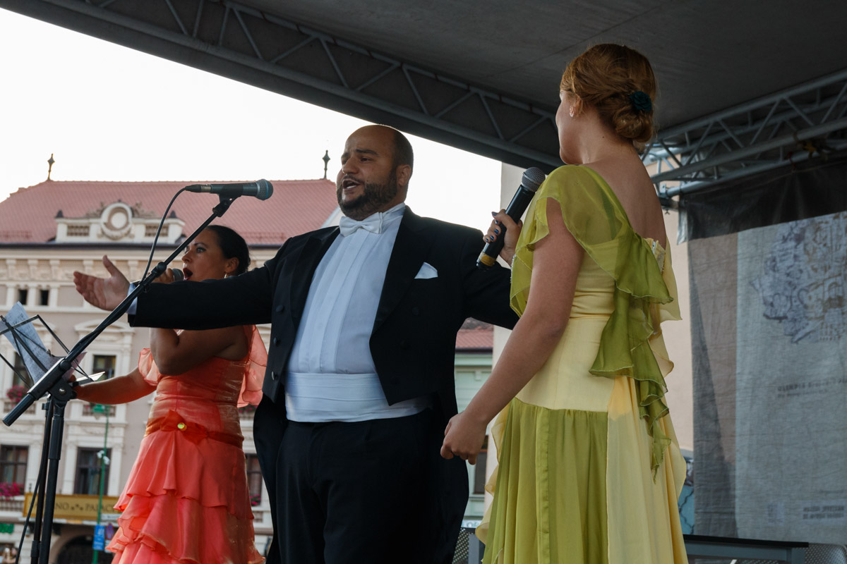 Spectacolul ”Gold und Silber – muzica și dansurile Centenarului” a continuat cu un recital de arii și duete din operete datând din ultima sută de ani, susținut de artiști lirici ai Operei Brașov: tenorul Liviu Iftene, soprana Irina Iftene, soprana Corina Klein și pianista Sena Ducariu.