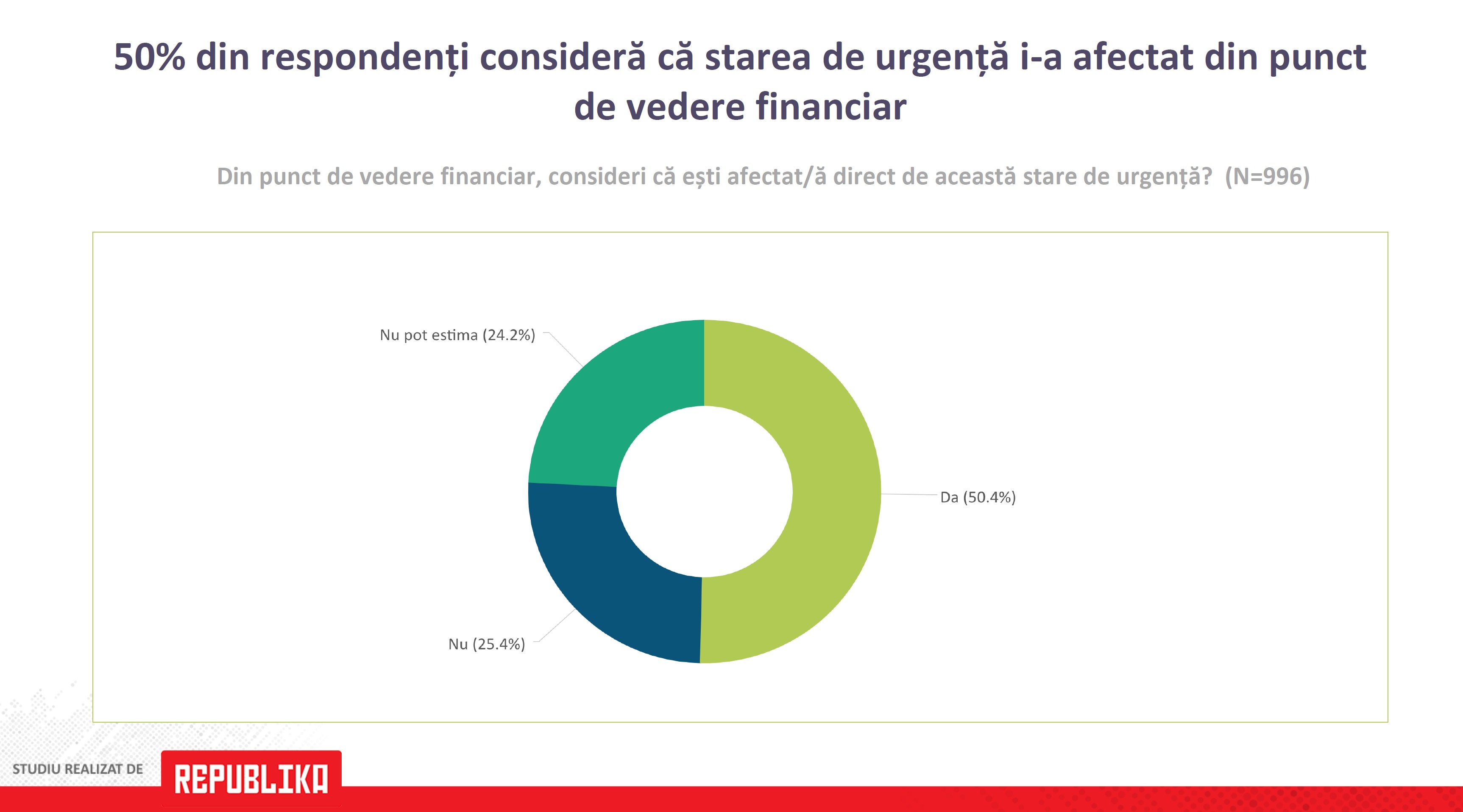 50% dintre românii participanți la studiul Republika declară că sunt afectați din punct de vedere financiar de starea de urgență.