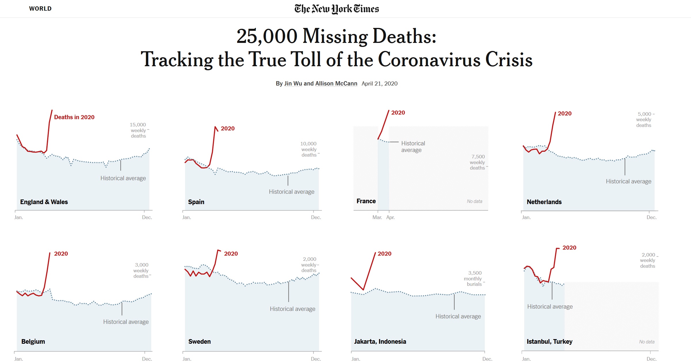 New York Times a analizat centralizări privind decesele din 11 țări, printre acestea Marea Britanie, Spania, Franța, Olanda și Belgia. În toate acestea, rata deceselor a crescut semnificativ.