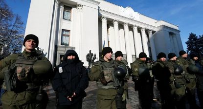 Sute de polițiști pensionari au forțat intrarea în Parlamentul de la Kiev