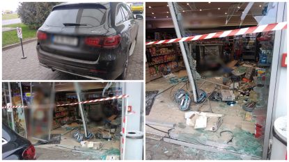 Arad: Un bărbat a intrat cu mașina în magazinul unei benzinării în timp ce efectua o manevră de marșarier | VIDEO