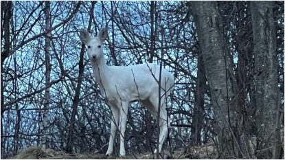 Imagini rare în zona Valea Porții din Bran. O căprioară cu blana albă, întâlnită de jandarmi | GALERIE FOTO