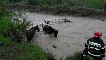 PRAHOVA: ISU intervine pentru salvarea unor cai rămași blocați în apele râului Doftana