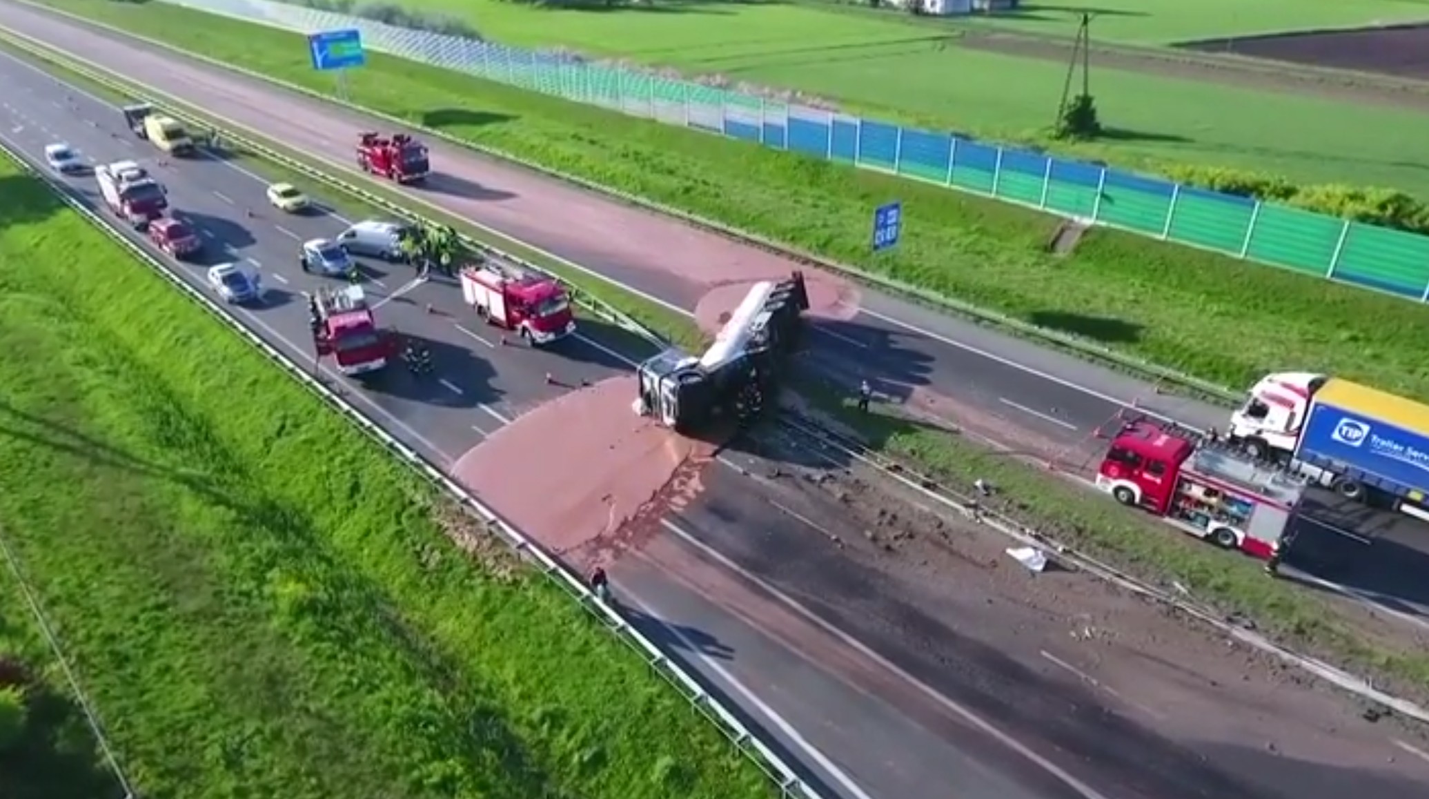 Râu de ciocolată pe o șosea din vestul Poloniei – VIDEO