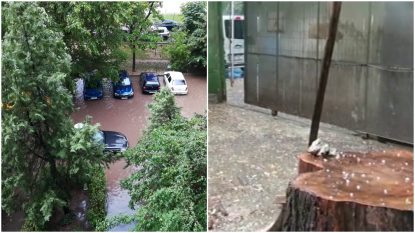Ploile au făcut prăpăd în sudul litoralului azi noapte. Străzi inundate, mașini avariate de copacii rupți de vânt sau plaje distruse sunt doar câteva pagube