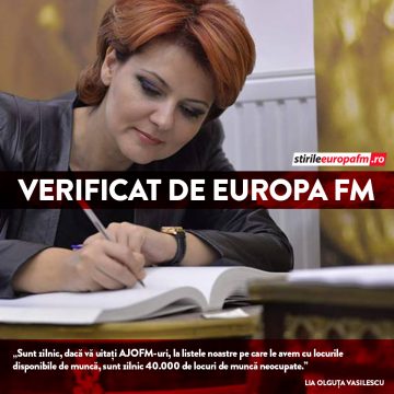 VERIFICAT DE EUROPA FM | Sunt sau nu 40.000 de locuri de muncă vacante, cum spune Olguța Vasilescu?