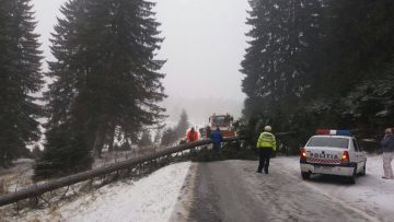 Traficul rutier pe DN1 se desfăşoară îngreunat din cauza copacilor căzuți pe carosabil