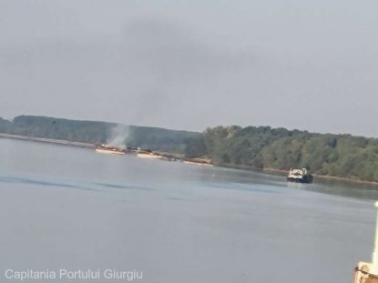 Ard două barje încărcate cu câte 1.200 de tone de cărbune, pe Dunăre, la Giurgiu-Ruse. Pompierii nu pot interveni din cauza riscului de poluare