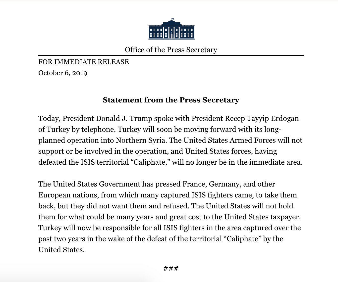 După anunțul retragerii armate din nord-estul Siriei, Trump amenință Turcia