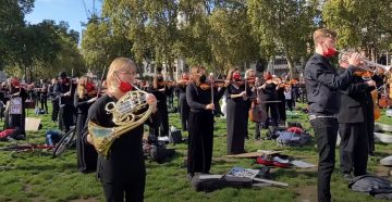 Londra: Protest al muzicienilor, cu respectarea măsurilor de distanțare | VIDEO
