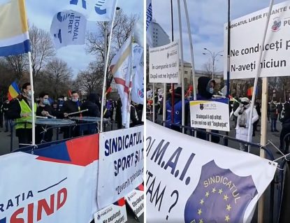 Angajații din sănătate și polițiștii protestează în fața instituțiilor centrale