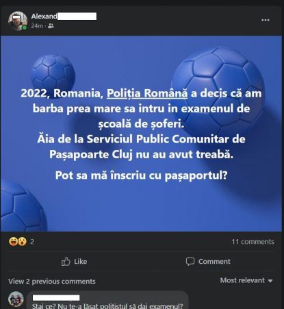 DEȘTEPTAREA: Un clujean nu a fost primit la examenul pentru permis auto pentru că avea barba prea mare
