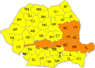ANM: Cod portocaliu de ploi torențiale și vânt în 20 de județe
