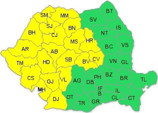 Cod galben de vânt şi Ploi pentru Transilvania şi Moldova