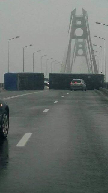 Un TIR s-a răsturnat pe Podul nou de la Agigea