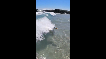 DRUM CU PRIORITATE: Rața care face surf, atracția principală pe o plajă din Australia | VIDEO