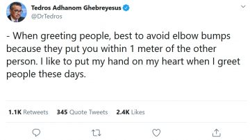 OMS recomandă: Evitați să vă atingeți cu coatele!