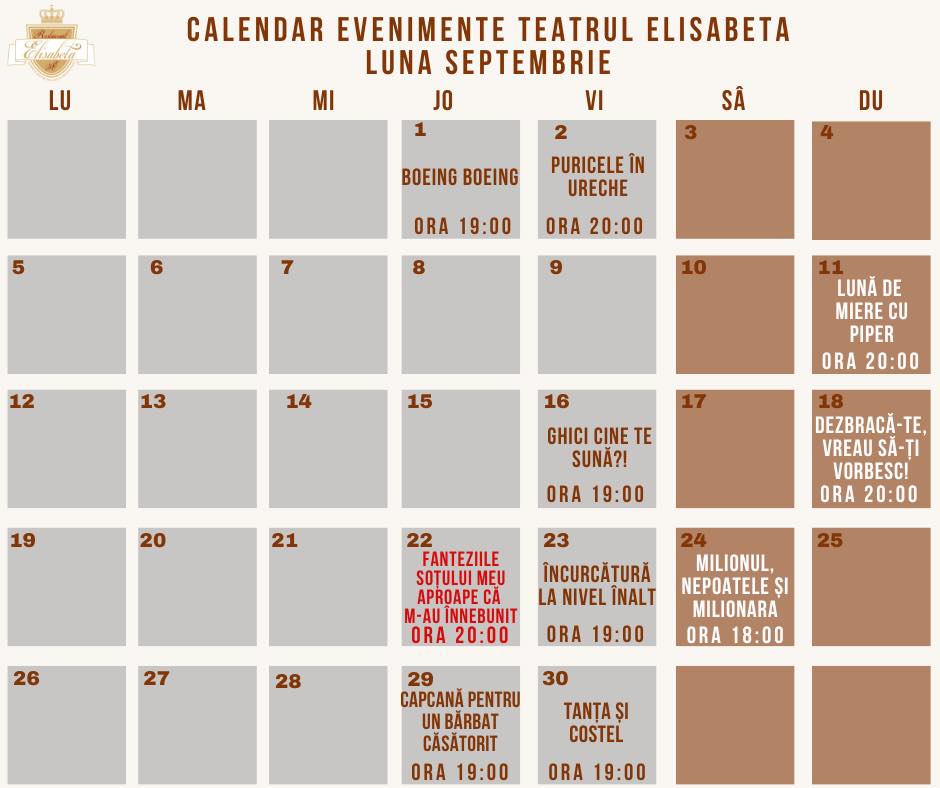 Spectatorii sunt invitaţi să consulte programul evenimentelor Teatrului şi Restaurantului Elisabeta, dar şi al celor de la Grădina Alhambra.