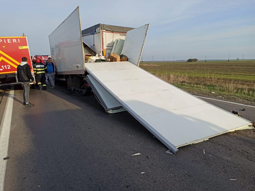 O dubă a fost strivită între două TIR-uri după o șicanare în trafic. Poliția a deschis dosar penal pentru ucidere în culpă in rem.