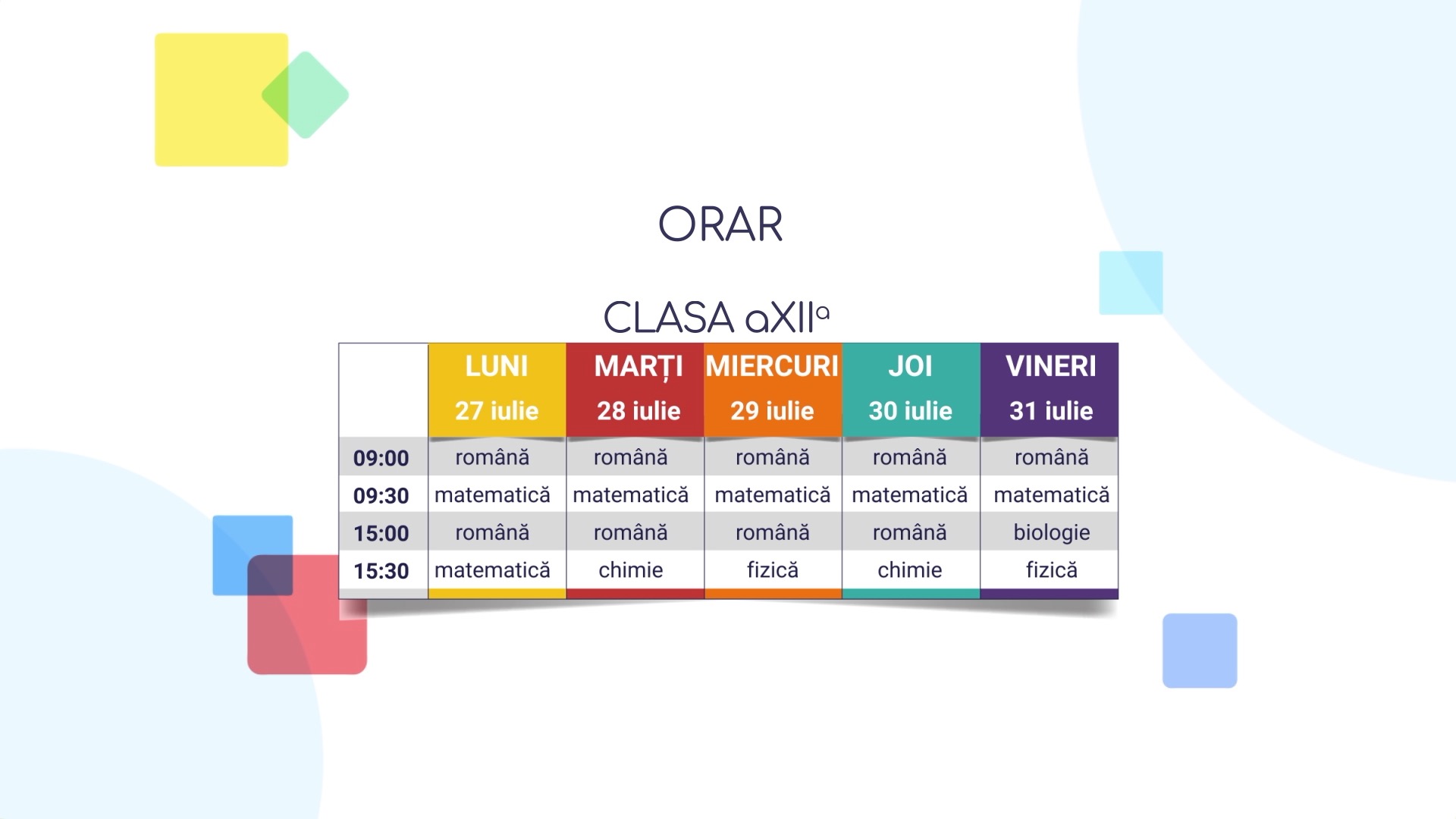 Astfel, începând din 27 iulie, de luni până vineri, cei aflaţi în pragul susţinerii examenelor de Bacalaureat pot urmări lecţii dimineaţa, începând cu ora 9:00, iar în a doua parte a zilei, lecţiile sunt programate de la ora 15:00. Materiile de exament pentru clasa a XII-a sunt predate de către profesori experimentaţi, pe baza manualelor aprobate de Ministerul Educației și Cercetării.