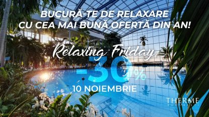 Therme București lansează “Relaxing Friday 2023”. Cea mai bună ofertă din an la voucherele One Day Holiday este valabilă doar vineri, 10 noiembrie