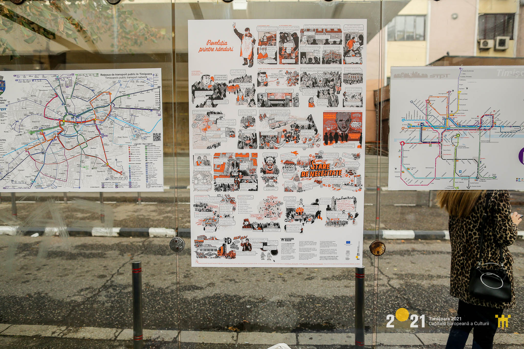 Tot în cadrul proiectului Memoriile Cetății, în 23 de stații de tramvai sunt amplasate benzi desenate create de Sorina Vazelina – pentru a oferi o amintire a evenimentelor din decembrie 1989. Pasagerii care așteaptă câteva minute în stație pot citi povești adevărate din timpul revoluției de acum 30 de ani, adunate de autor și puse în benzi desenate.