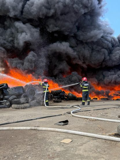Tulcea: Incendiu major la un depozit de anvelope uzate. A fost emis un mesaj Ro-Alert | GALEIRE FOTO | VIDEO